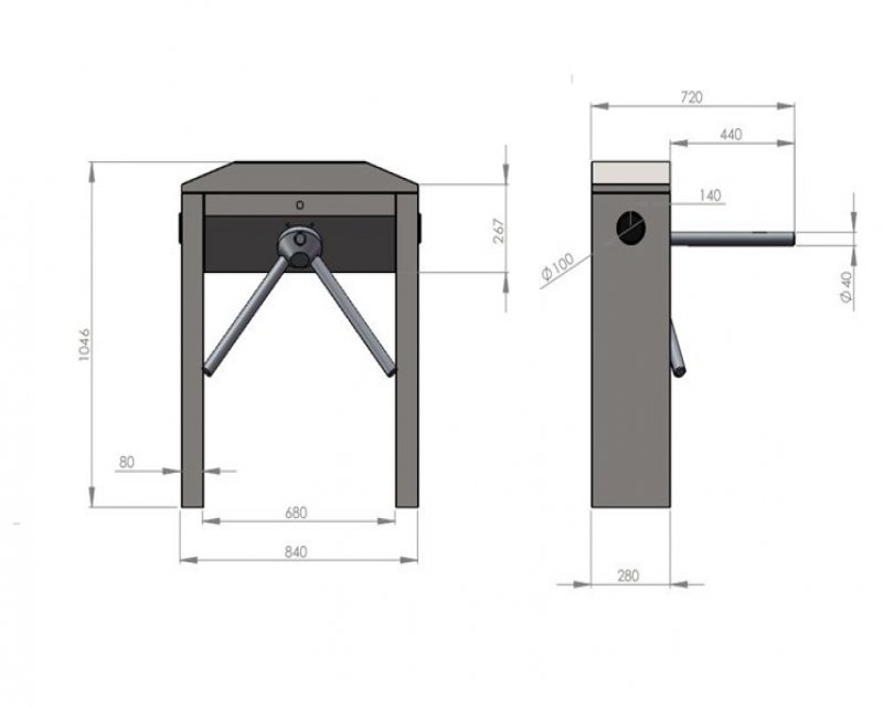 | - Tripod Kilitleme: 24VDC selenoidler ile; Kilitleme selenoidler çekili iken gerçekleşir. (Panik durumunda sistem enerjisi kesilerek turnike her iki yönde geçişe açık hale gelir.) |